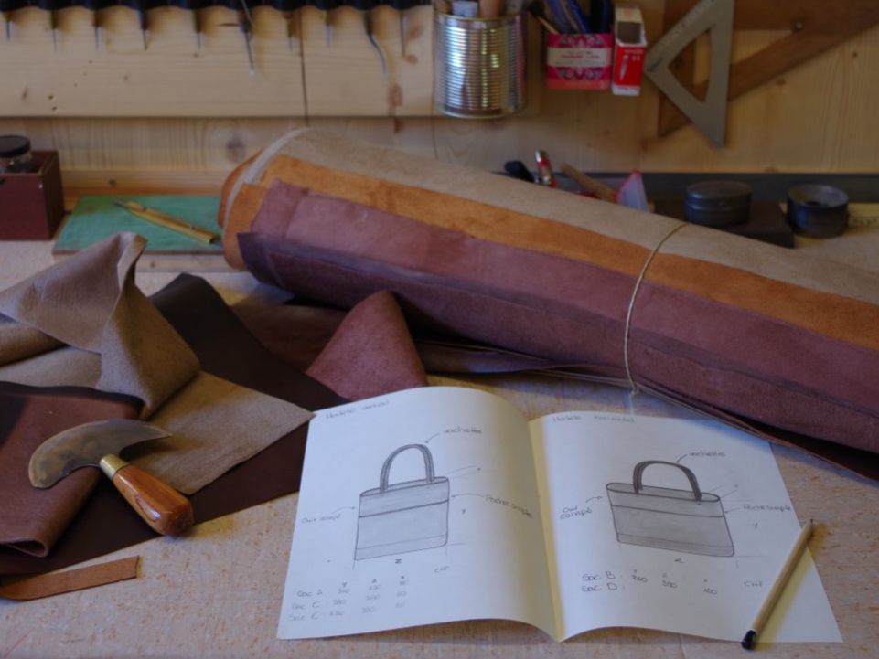 La sélection de cuirs vous attend à l’atelier, pour créer votre sac !